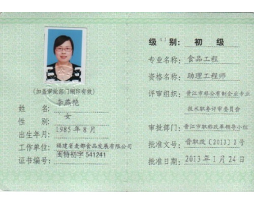 食品工程食品助理證書